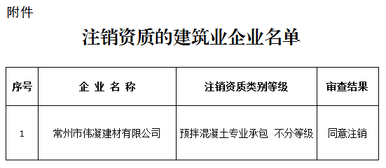 根据《建筑业企业资质管理规定》(部令第 22 号)和《建筑业企业资质管理规定和资质标准实施意见》(建市〔2015〕20 号)等文件要求。依企业申请,我局对注销资质材料进行审查,现将审查结果予以公告。