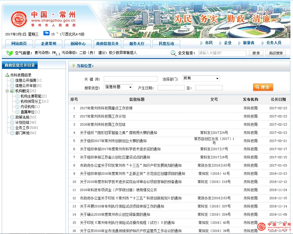 通过“中国.常州”政府门户网站、常州市技术创新网(www.czstb.gov.cn)等媒体公开政务信息;为公民、法人或其他组织获取我局政务信息提供方便。