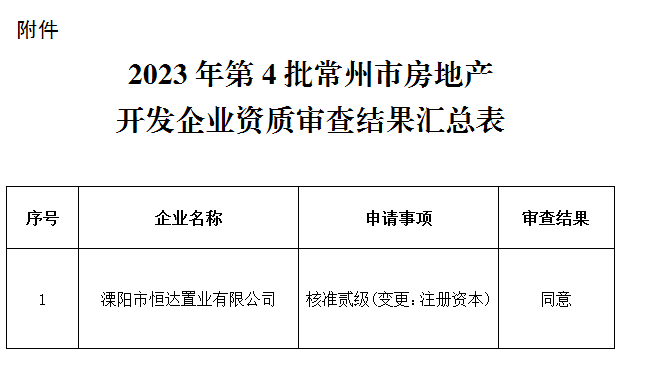 附件:2023年第4批常州市房地产开发企业资质审查结果汇总表