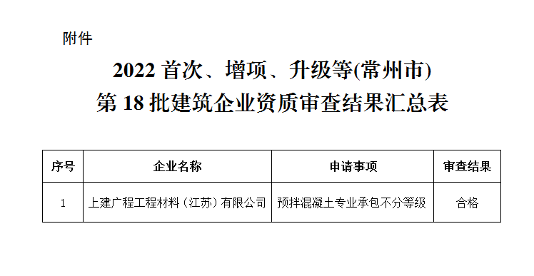 附件:2022年第18批常州市建筑业企业资质审查结果汇总表