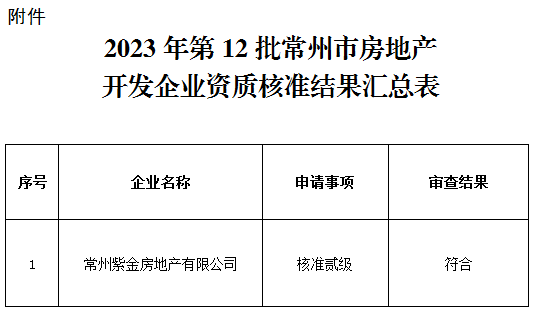 附件:2023年第12批常州市房地产开发企业资质核准结果汇总表