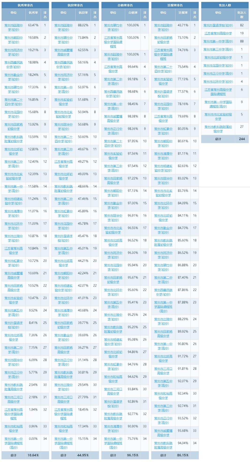 2025年度江苏省常州市直属学校学生体质健康数据公示