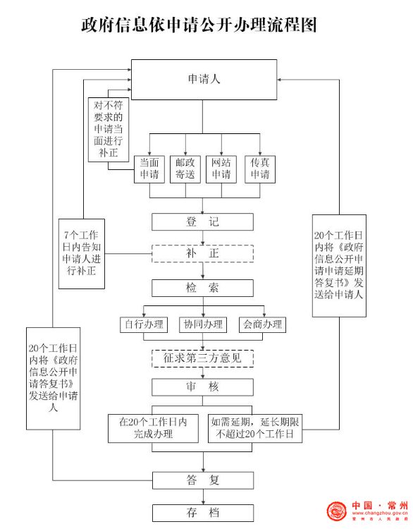 3.在线申请:申请人进入常州市人民政府门户网站首页-“政务公开”栏目-“依申请公开”页面,在线填写电子版《常州市人民政府信息公开申请表》提交申请。