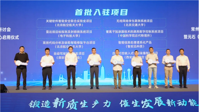 活动中,北京航空航天大学关键软件智能安全联合实验室、北京交通大学无线网络孪生路测系统、电子科技大学雷达弱目标探测及射频微系统、中国科学院近代物理所重离子加速器技术的通用数字控制系统等首批8个高科技项目入驻元石(常州)人工智能联合创新中心。元石(常州)人工智能科创基金签约。元科基金、元石创新中心科创孵化合作签约。4名专家获颁人工智能科技顾问聘书。