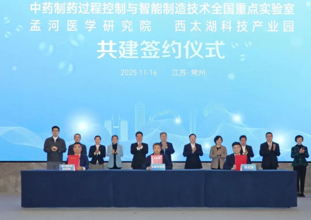 11月16日,中药制药过程控制与智能制造技术全国重点实验室与孟河医学研究院共建签约,康缘集团生物医药产业战略合作项目正式落户西太湖科技产业园。