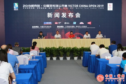 8月29日下午,汇丰世界羽联巡回赛超级1000赛——2019威克多·中国羽毛球公开赛新闻发布会在常州奥体中心体育馆乒羽中心举行。发布会由常州市人民政府副秘书长刘文荣主持,中国羽毛球协会副主席孙俊发表致辞,常州市体育局局长朱笑冰介绍大赛筹备情况。江苏省体育局副巡视员范金华和江苏威克多体育用品公司副总经理任茂成等领导出席发布会并答记者问。