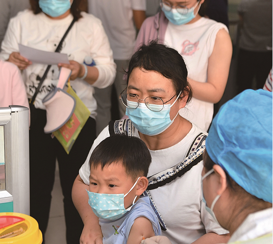 4月9日,常州市各新冠病毒疫苗接种点已陆续开放,市民主动接种意识高涨。在武进马杭社区卫生服务中心接种点看到,前来接种的市民在工作人员引导下,严格做好个人防护,保持“一米线”距离有序接种。据该中心负责人介绍,当天是恢复开放以来的第二次集中接种,2个多小时就接待千人左右前来接种,比本轮疫情发生之前增加1倍以上。