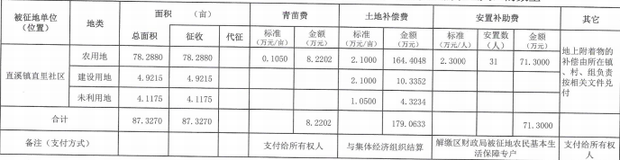 常州市金坛区自然资源和规划局呈报的(坛)地挂导字〔2019〕第11号《建设用地项目呈报说明书》、实施方案、补充耕地方案、征收土地方案,于2019年12月31日已经省政府批准,批准文号为苏政地〔2019〕4510号。根据《中华人民共和国土地管理法》第四十六条、国土资源部令第10号《征收土地公告办法》和《江苏省土地管理条例》等有关规定,现将该批次征收所涉及的直溪镇直里社区的有关征地补偿、安置方案的有关内容和事项公告如下: