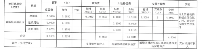 注:代征土地在今后征地补偿安置政策未调整情况下被批准征收占用,不再作其他补偿。
