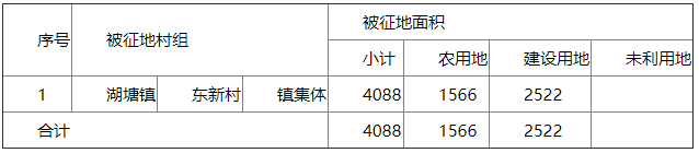 经江苏省人民政府批准,同意征收(使用)土地5.2665公顷。现根据《中华人民共和国土地管理法》有关规定将征收土地方案的相关内容公告如下: