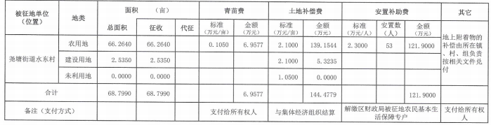 注:代征土地在今后征地补偿安置政策未调整情况下被批准征收占用,不再作其他补偿。