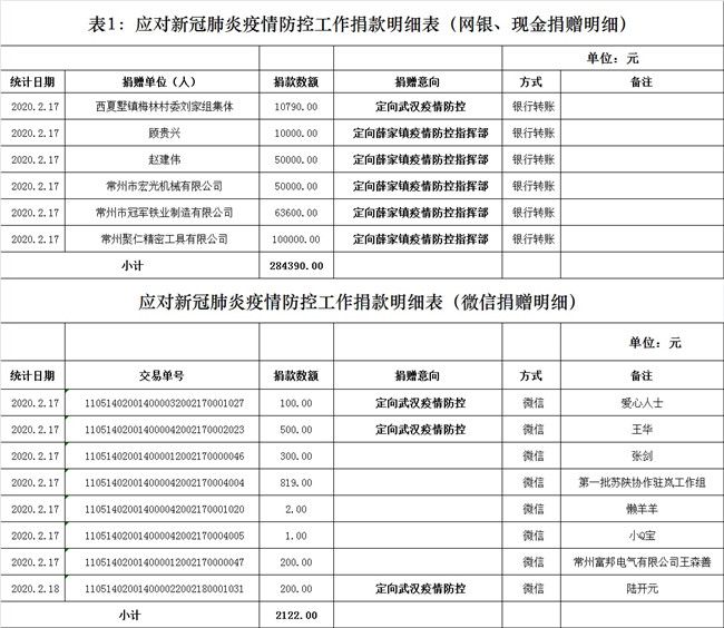 2020年2月17日上午9时至2020年2月18日上午9时,新北区红十字会共接收捐款286512元,口罩102000个。