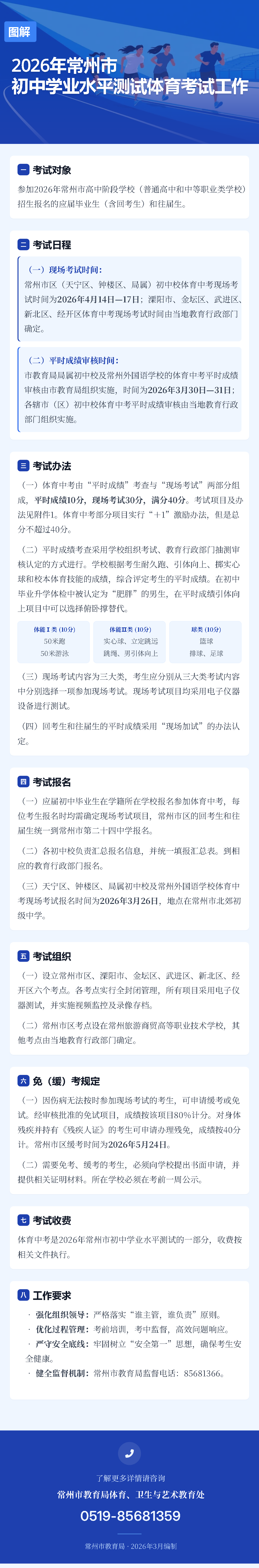 图解-2026年常州市初中学业水平测试体育考试工作
