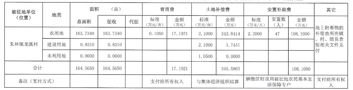 注:代征土地在今后征地补偿安置政策未调整情况下被批准征收占用,不再作其他补偿。