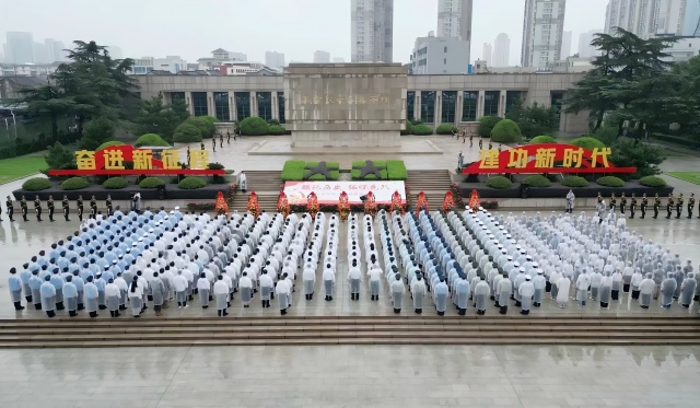 《献花曲》深情悠远。20位礼兵托起各界代表敬献的10只花篮迈步上前,将花篮整齐摆放在纪念碑前。全体人员肃穆静立,行注目礼。