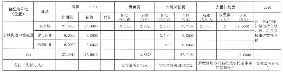 注:代征土地在今后征地补偿安置政策未调整情况下被批准征收占用,不再作其他补偿。