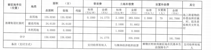 注:代征土地在今后征地补偿安置政策未调整情况下被批准征收占用,不再作其他补偿。