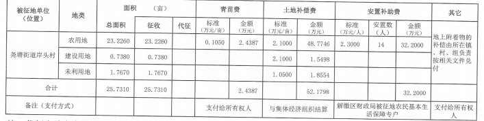 注:代征土地在今后征地补偿安置政策未调整情况下被批准征收占用,不再作其他补偿。