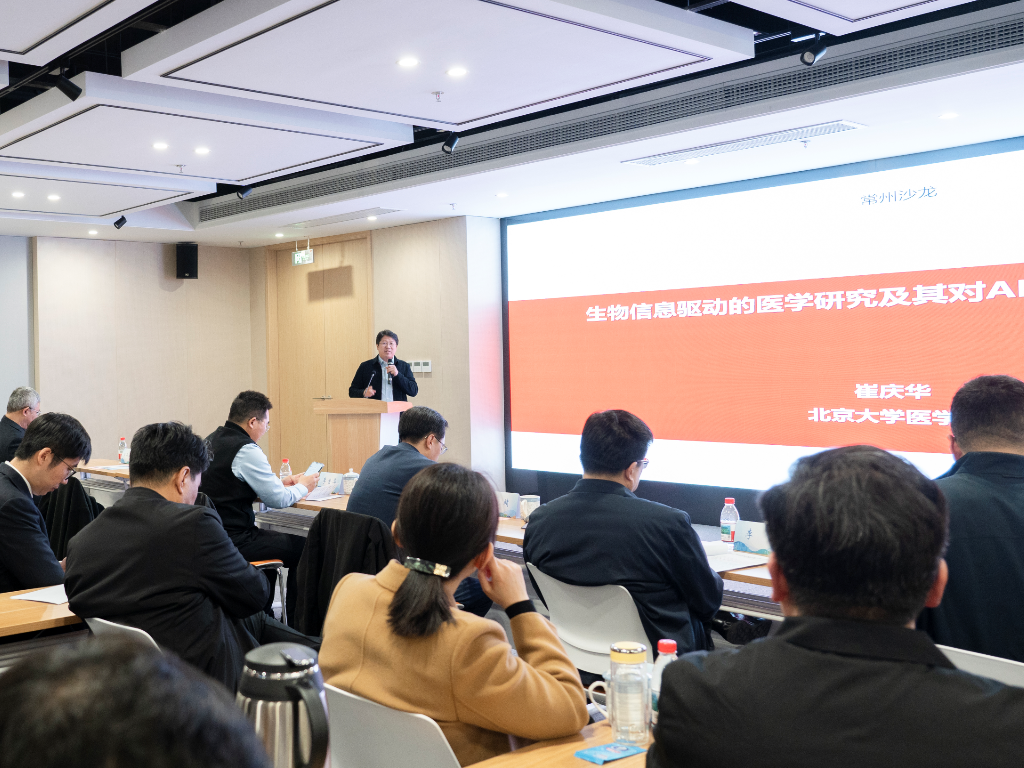 本次沙龙上,中国科学院李金华研究员、北京大学医学部崔庆华教授带来了精彩的专题授课,分享生物地磁学、医学生物信息学领域的前沿研究与AI技术应用成果。江苏百奥信康医药科技有限公司代表介绍了企业多年来进行产业合作情况,常州制药、常州四药等多家企业代表分享了各自在AI与生命健康融合发展中的探索与需求。活动还设置了自由互动环节,政企学三方围绕技术转化、产业合作等话题深入探讨。