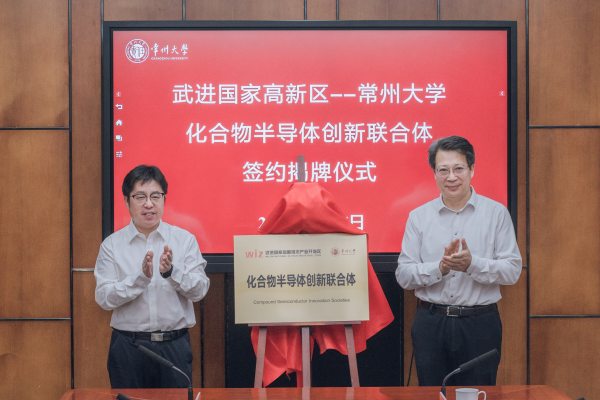 副市长潘冬铃、常州大学党委书记徐守坤为“化合物半导体创新联合体”揭牌。