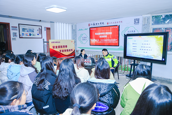 场外还开设了法治集市,多个部门在法律咨询区摆摊设点进行普法宣传及法律问题答疑解惑;法治游园会设置各类趣味互动游戏,同学们踊跃参与,现场气氛热烈。活动同步设置了法治巡讲,法院、检察院、司法局、公安分局、交警大队、律所分别为7个学院量身定制普法课程,获得师生的一致好评。