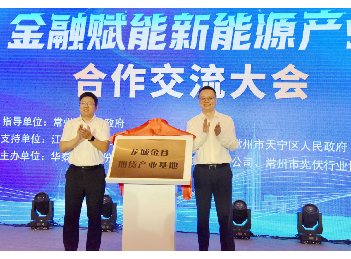 为加速创新资本集聚,促进科技、产业、资本、人才的良性循环,现场,金融赋能新能源之都合作平台正式启动,龙城金谷期货产业基地揭牌成立,华泰期货与常州光伏协会、华泰期货与天宁区进行了合作签约。