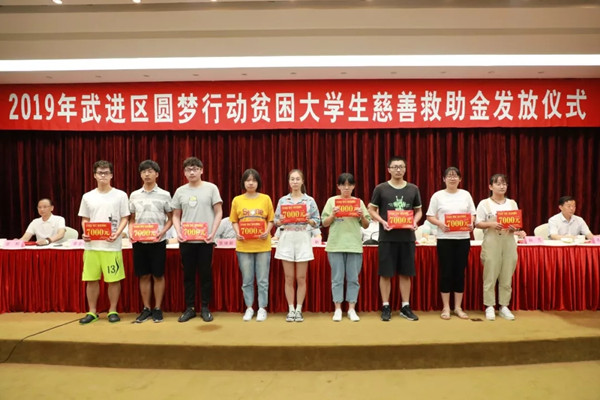 8月17日,2019年常州武进区圆梦行动贫困大学生慈善救助金发放仪式举行,为17名即将进入大学校园的新生和30名往届武进学子发放助学金。武进区领导李林、张小虎参加活动。