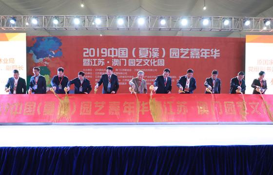 10月18日上午,2019中国(夏溪)园艺嘉年华暨江苏·澳门园艺文化周在常州武进区夏溪花木市场正式开幕。原国家林业局党组副书记、副局长李育才宣布开幕。市、区领导蔡骏、李林、叶明华、薛红霞参加活动。