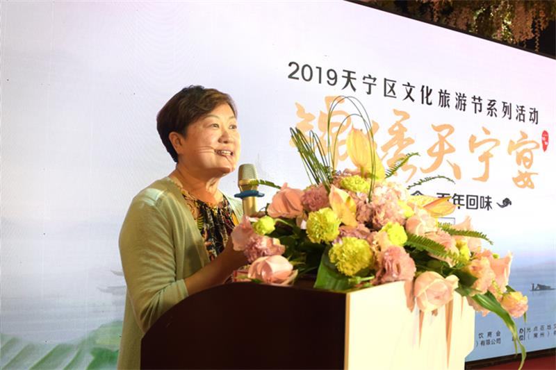 管黎芳致辞,代表区政府,向莅临活动的各位来宾表示欢迎,向长期以来关心和支持天宁餐饮事业发展的各界朋友们表示衷心感谢!