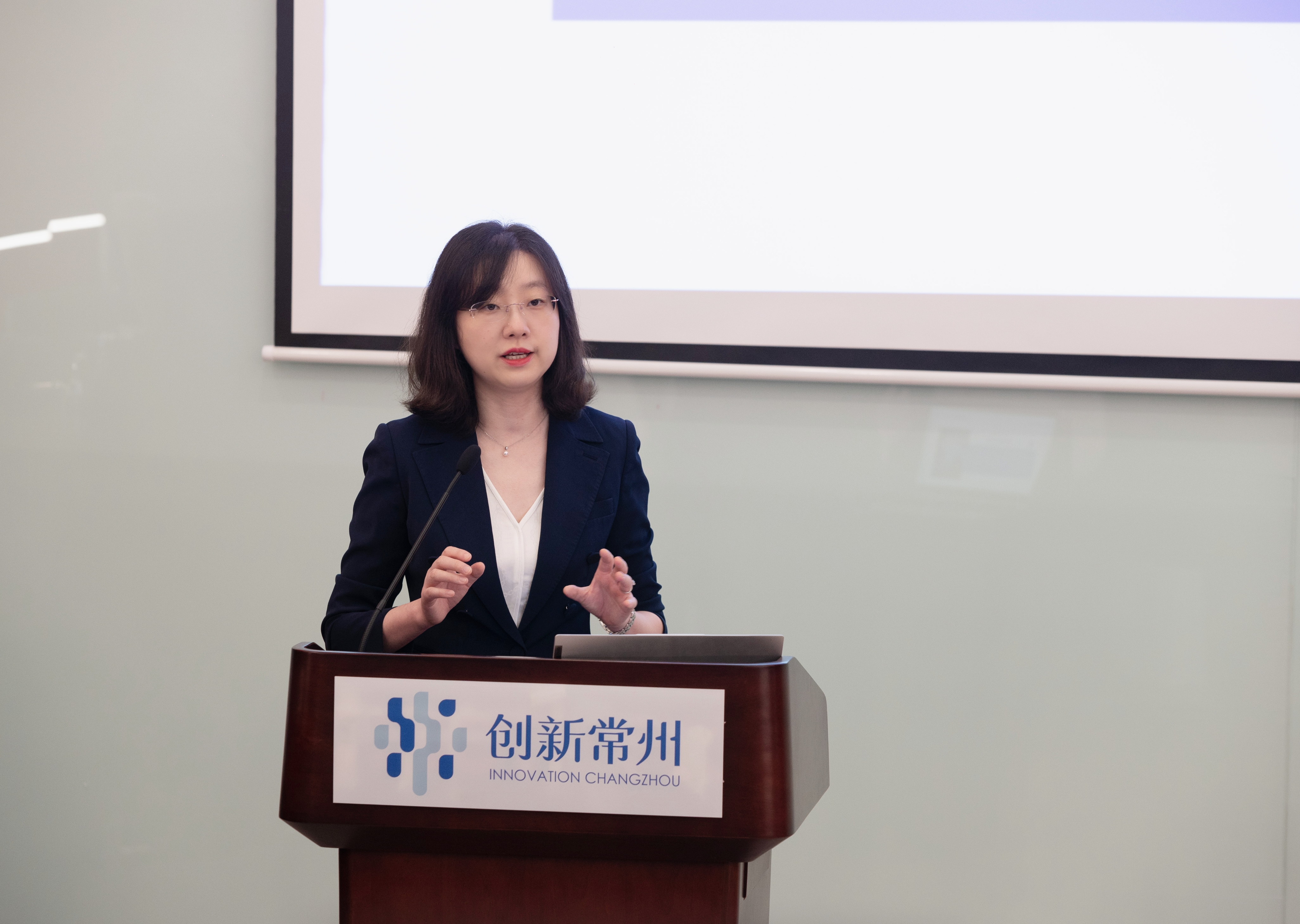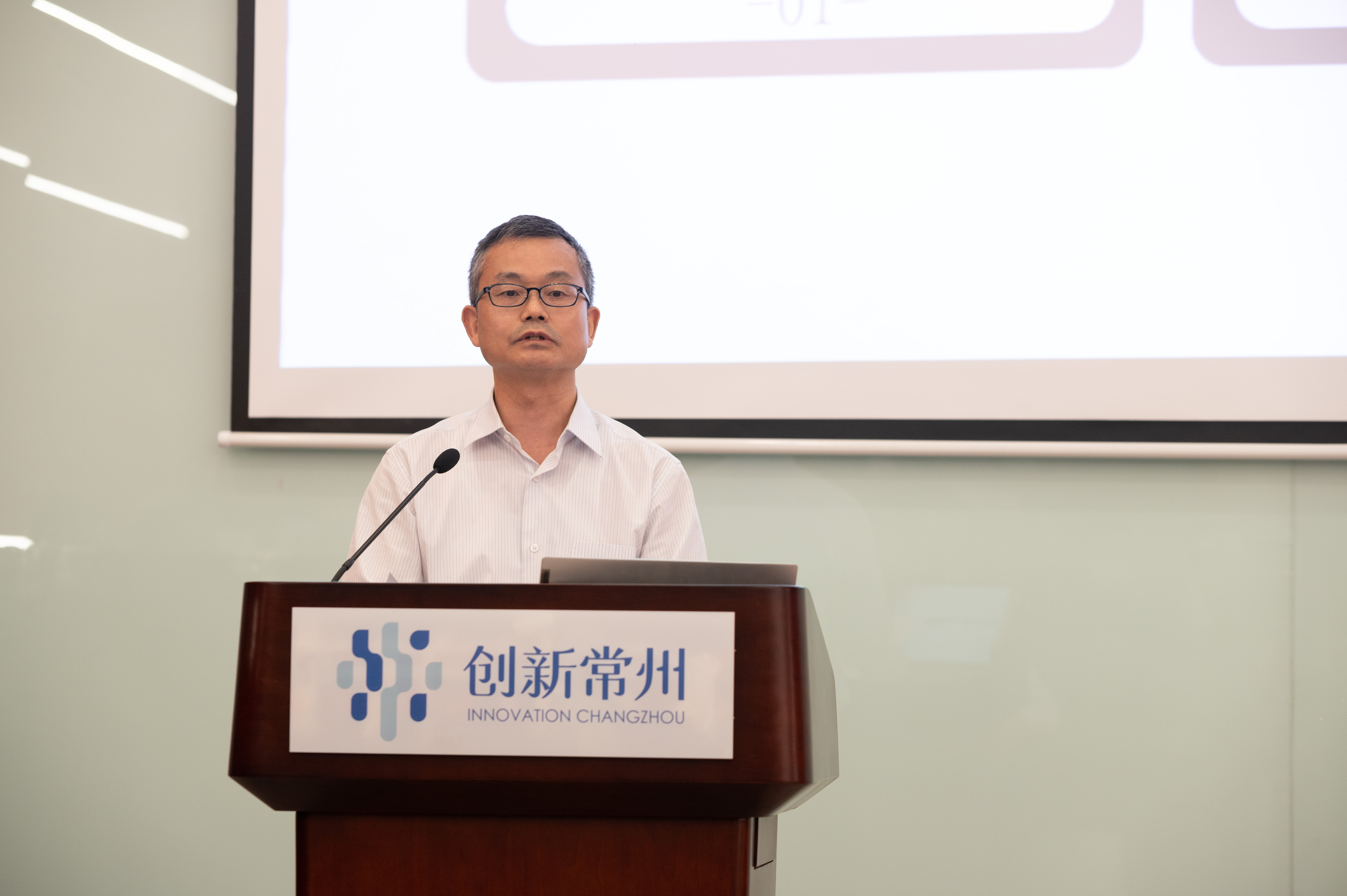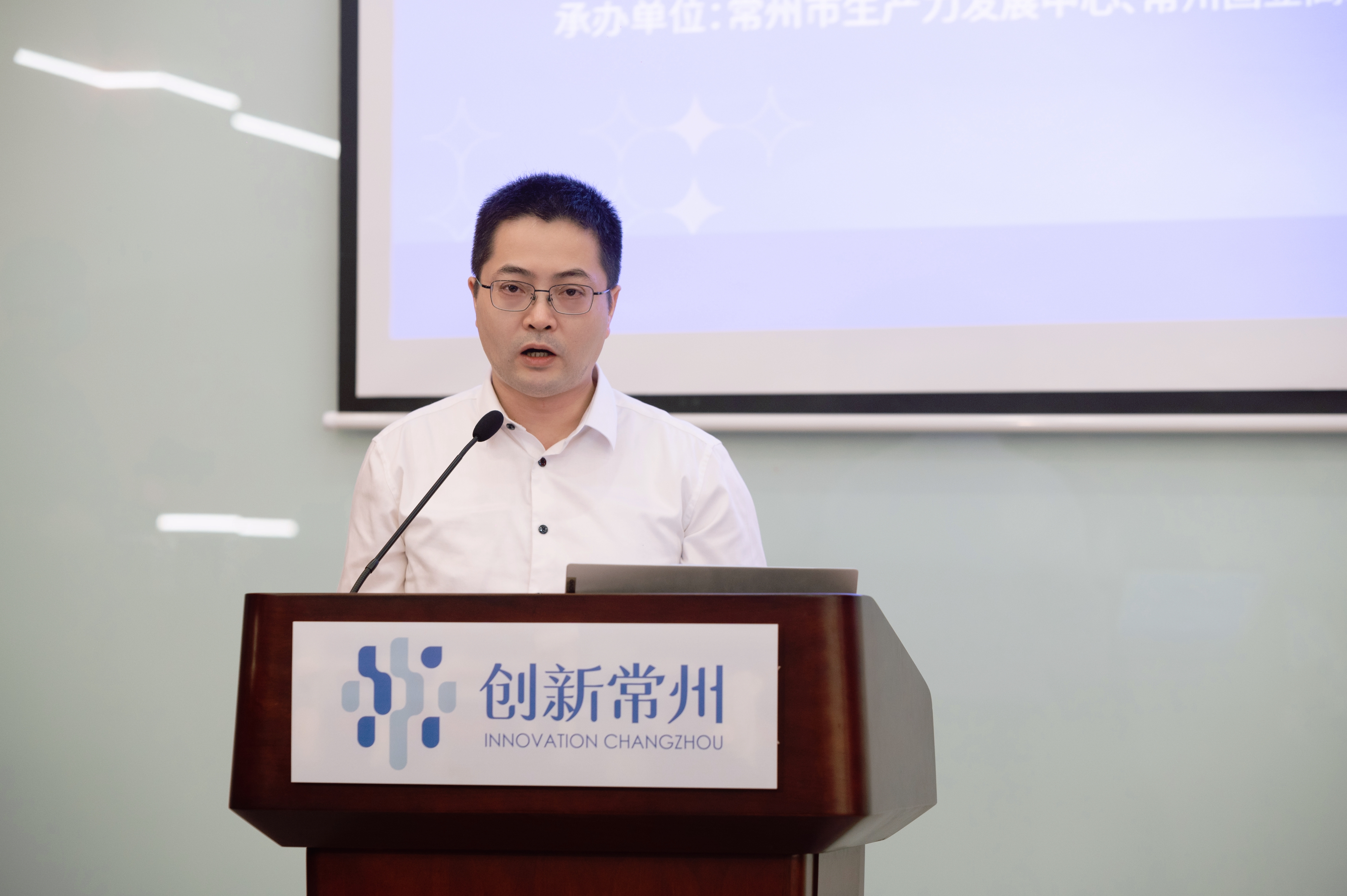 畅通金融活水,服务科技创新,中国人民银行常州市中心支行张秋冬副行长介绍了科技创新再贷款政策,并对专项服务于科技型中小企业的“苏创融”等产品进行了推介。