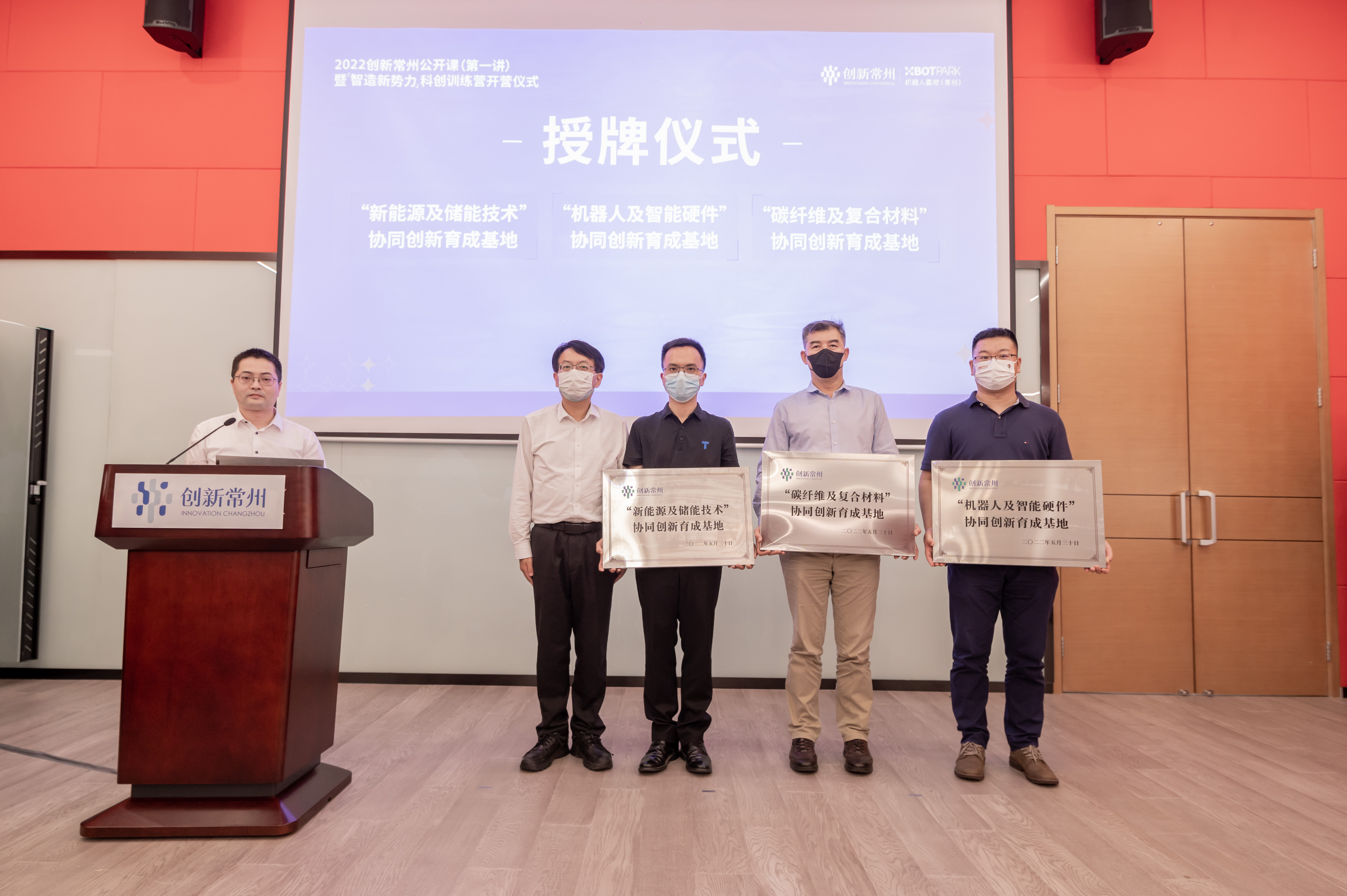 用科技的光芒照亮城市梦想,5月30日,常州市创新办、市委人才办、市科技局等部门共同举办“创新常州公开课”暨“2022创新常州——‘智造新势力’科创训练营”活动,香港科技大学李泽湘教授、长江商学院副院长甘洁教授等顶流科创导师分析产业赛道新趋势,开启创新创业新视角。常州市副市长蒋鹏举为“机器人及智能硬件”、“新能源及储能技术”、“碳纤维及复合材料”三大协同创新育成基地授牌。