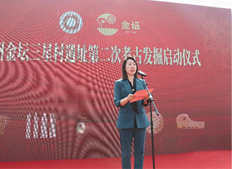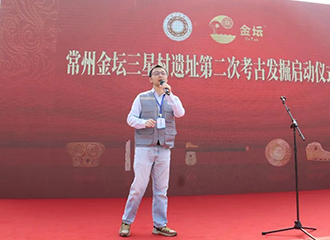 金坛区委常委、宣传部长朱霞在致辞中表示,近年来,金坛区委、区政府高度重视地域文明探源工作,坚持新时代文物工作方针,深挖地方特色资源,扎实做好考古研究和文物保护工作。去年,金坛将三星村遗址保护公园建设纳入常州市“532”发展战略重点文旅项目,依托社科院考古所开展田野考古勘探,厘清遗址四至范围和功能分布。联合中科院古脊椎动物与古人类研究所研究出土人骨古DNA,积极探索地域文明发展脉络,努力填补历史研究缺环。金坛启动三星村遗址二次发掘,将持续加强三星村遗址的保护和利用,大力构建融合发展、创新发展的新格局,让更多文物和文化遗产走出去、活起来,为中华文明探源研究贡献更多金坛力量。希望各位领导、专家为三星村遗址保护利用出谋划策、群策群力,在大家一如既往的关怀关心和通力合作下,三星村之光必将照亮现实、照耀世界。