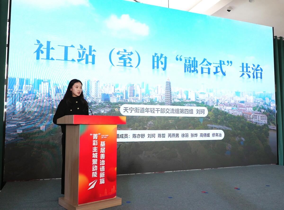 为进一步贯彻落实新时代党的建设总要求,建设高素质干部队伍,深化党建引领基层社会治理,1月4日上午,天宁街道举办“菁”彩主城聚动能 基层善治谱新篇——年轻干部调研课题汇报、基层治理项目展演活动,推动主题教育走深走实、见行见效。天宁区政府副区长吴小红,天宁区委组织部副部长、公务员局局长王香平,天宁区民政局党组书记、局长袁维鸿,天宁区天宁街道党工委副书记、办事处主任钱滨,常州市总工会基层工作部副部长王一博,天宁区委主题教育第五联络组副组长李虹参加活动。