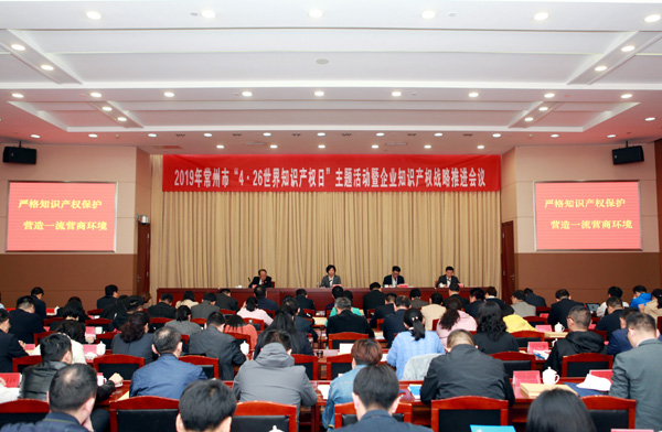 4月26日,常州市2019年“4·26世界知识产权日”主题活动暨企业知识产权战略推进会议在市行政中心浩然厅举行。副市长许峥出席会议并讲话。